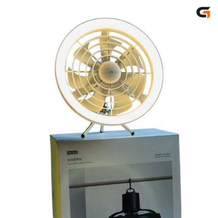 JISULIFE FA17 Rechargeable Fan with LED Light and Table Tripod- White Color